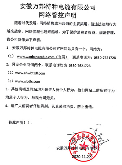 鄭重聲明:安徽萬(wàn)邦特種電纜有限公司官方網(wǎng)站為:www_wanbangcable_com.wrjybc.cn,除此之外無(wú)任何子網(wǎng)站或合作網(wǎng)站,其余均為假冒偽劣。電話:0550-7621728 13485756353 地 址:安徽省天長(zhǎng)市滁州高新技術(shù)產(chǎn)業(yè)開(kāi)發(fā)區(qū)經(jīng)四路29號(hào)